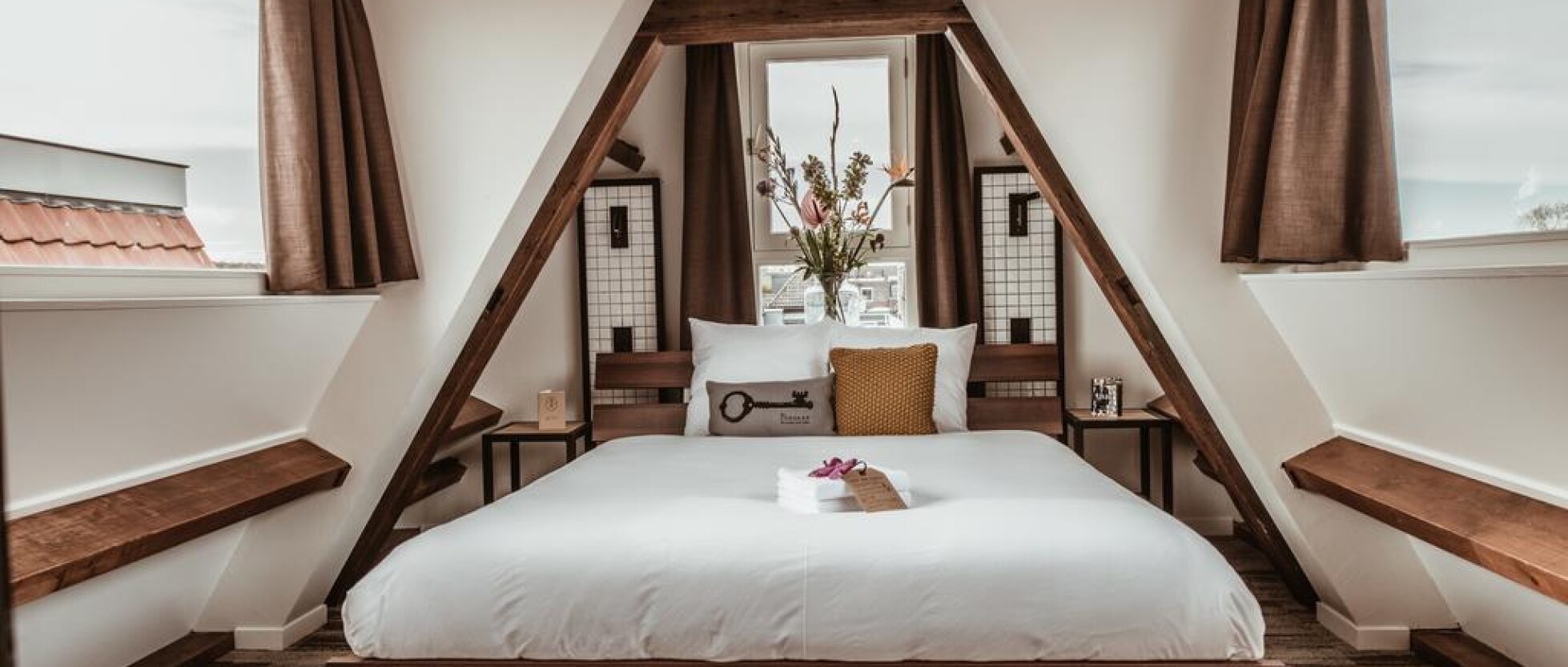 La zona è molto pittoresca, l’hotel è all’angolo tra due canali e se ne può godere la vista attraverso le grandi finestre e le vetrate. Le camere non sono molto grandi, nello stile di Amsterdam, ma sono corredate di tutto il necessario.