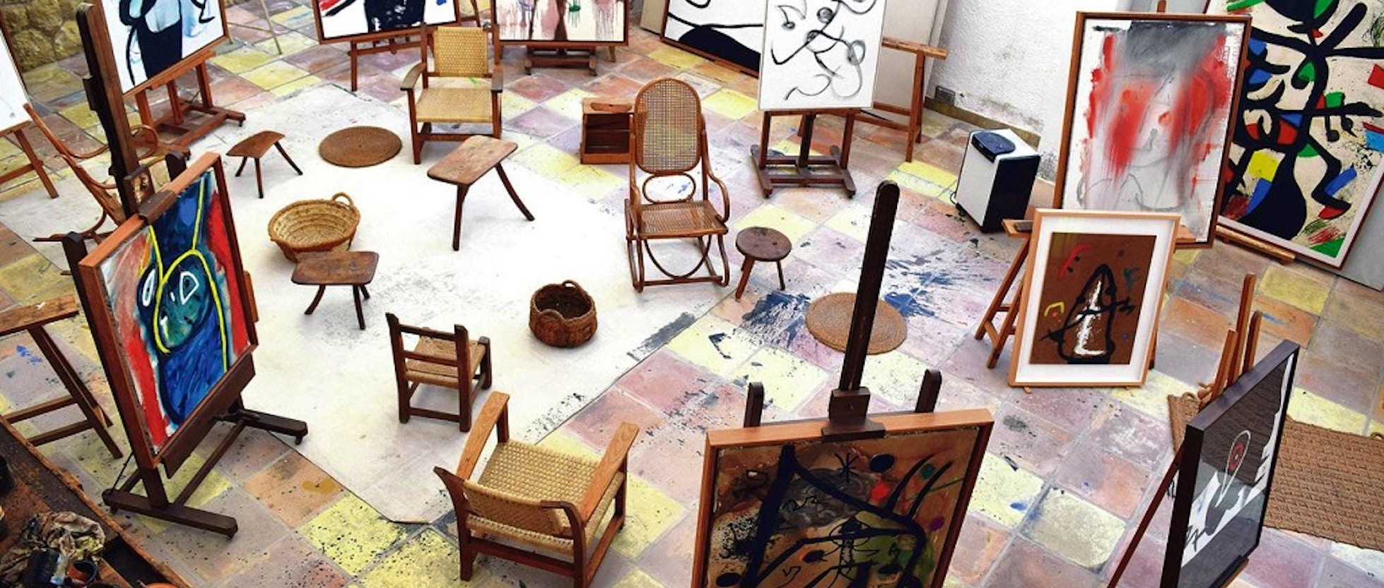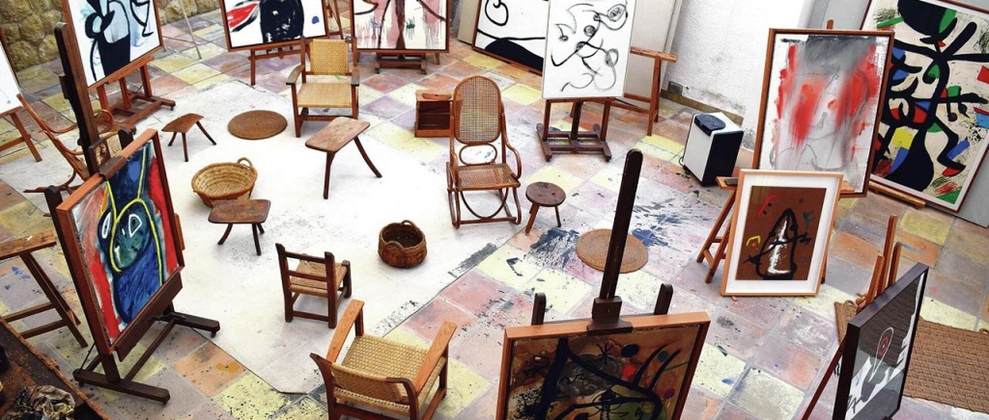 La sezione centrale della mostra è inoltre dedicata alla ricostruzione dello studio di Mirò a Maiorca, composta da più di 40 oggetti originali in esposizione, per la prima volta, in un evento di tale portata.